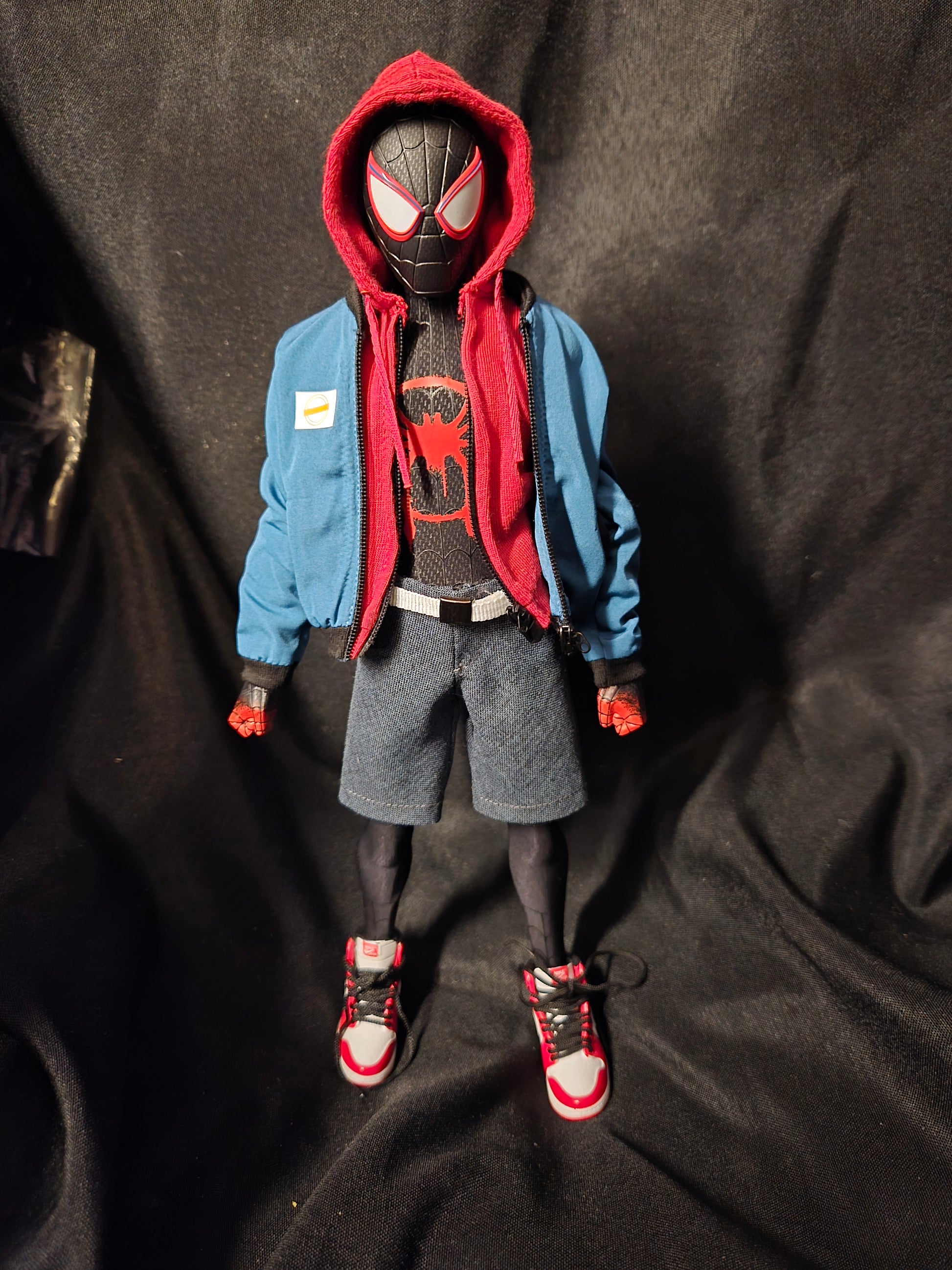 Hot Toys' MMS567 Miles Morales figure captures the iconic Spider-Man: Into the Spider-Verse character with exceptional detail and articulation. This 1/6 scale collectible features an intricately sculpted head with authentic likeness, multiple interchangeable hands, and a meticulously tailored fabric suit reflecting Miles' distinctive design. The figure comes complete with a custom pair of Jordans, adding an authentic streetwear element that defines the character. Perfect for serious collectors seeking museum-quality Marvel collectibles with premium craftsmanship and screen-accurate accessories.